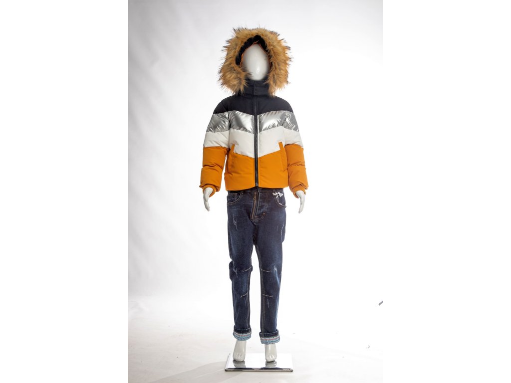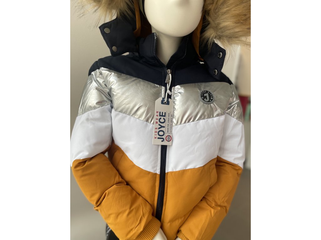 Chlapecká zimní bunda s umělou kožešinou "COLORS"/Modrá, žlutá, bílá