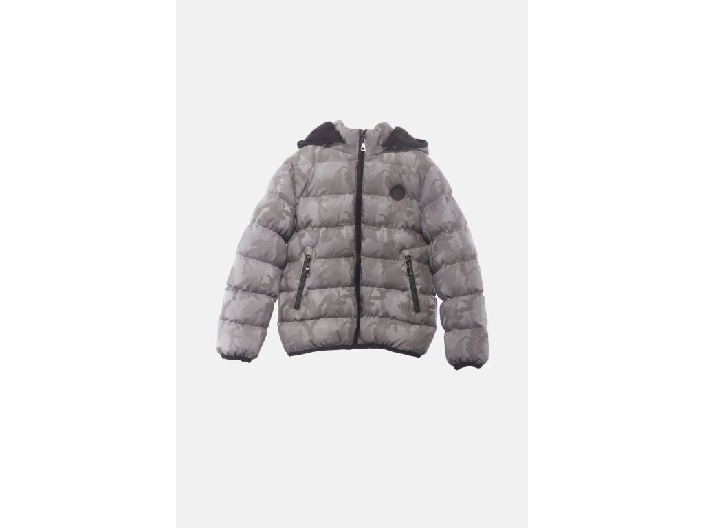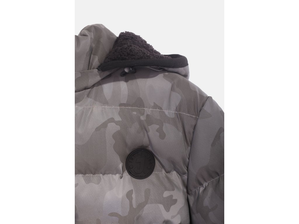 Na téhle designově propracované dětské zimní bundě najdete vše, co si od tohoto kousku oblečení můžete přát - hřejivé prošívání a podšívku z flísového kožíšku, kapuci, dvě kapsy na zip a oblíbený maskáčový vzor ve stříbrné barvě s reflexní úpravou, která se postará o bezpečný pohyb po silnicích i chodnících za zhoršené viditelnosti.