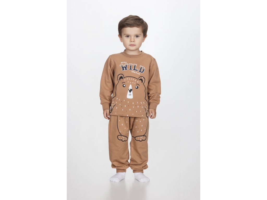 Chlapecké bavlněné pyžamo "STAY WILD"/Zelená, šedá, hnědá