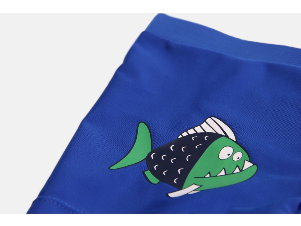 Modré jednobarevné chlapecké plavky s potiskem rybky jsou vyrobeny z kvalitního polyesteru, jsou odolné a pohodlné pro celodenní nošení. Elastická guma v pase plavky bezpečně drží na svém místě, takže se váš syn může soustředit na zábavu ve vodě. Ať už se cachtá na mělčině nebo si hraje na písku, v těchto chlapeckých plavkách přiléhavého střihu bude vypadat a cítit se skvěle. Pokud tedy hledáte dokonalé plavky pro chlapce, nehledejte nic jiného než chlapecké plavky "FISH".