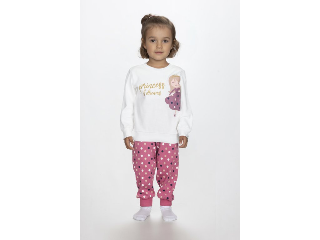 Toto pohodlné pyžamo se skládá z trička se zajímavě řešeným spodním okrajem s motivem princezny, tepláky jsou navrženy pro maximální pohodlí, s elastickým pasem, který zajistí, že pokaždé perfektně padnou.