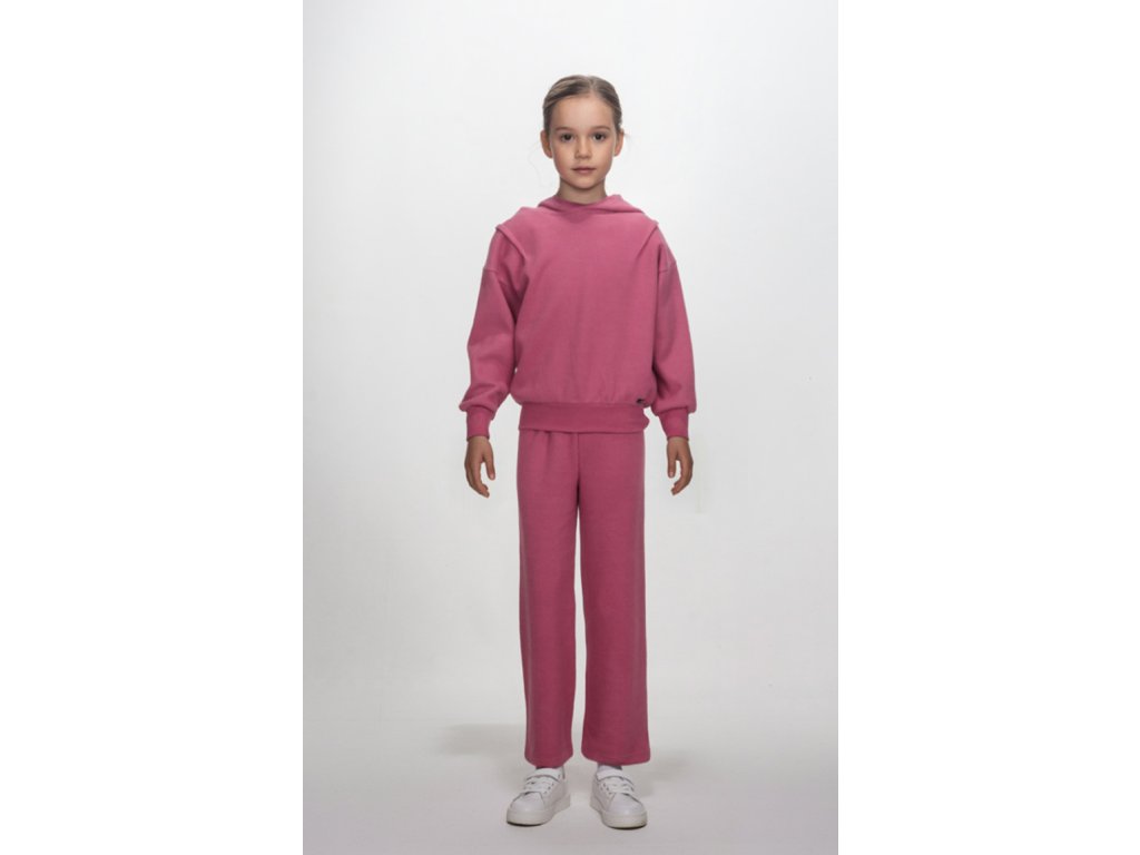 Tato dívčí souprava mikiny a širokých kalhot, kterou musí mít každá módně založená mladá dáma, je dokonalým doplňkem šatníku vaší slečny. Kalhoty s rovnými nohavicemi jsou vyrobené z příjemného materiálu a poskytují pohodlí po celý den. Jsou ideální pro dívky, které se rády hýbou, tančí a baví a zároveň drží krok s nejnovějšími módními trendy.